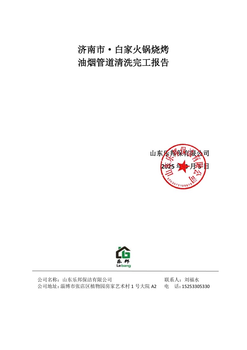 濟(jì)南市·白家火鍋燒烤清洗報(bào)告25.3.5