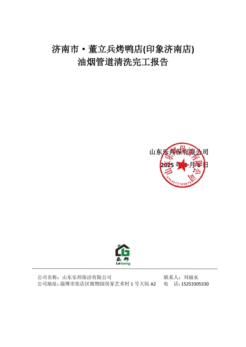 濟(jì)南市·董立兵烤鴨店(印象濟(jì)南店)清洗報(bào)告25.3.6