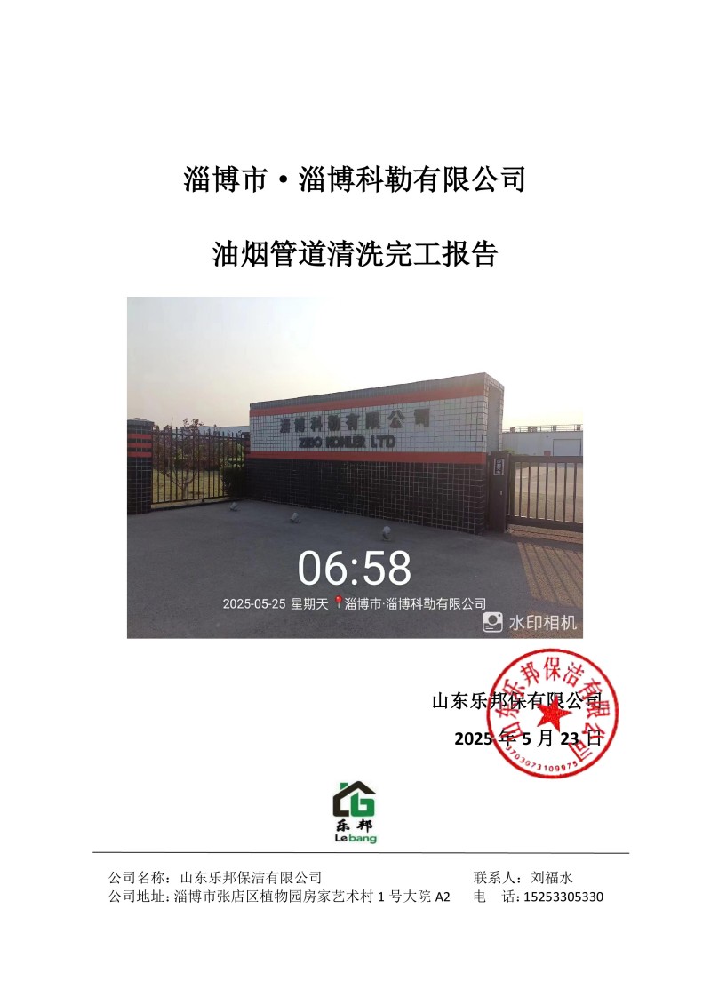 淄博市·淄博科勒有限公司清洗報(bào)告25.5.25
