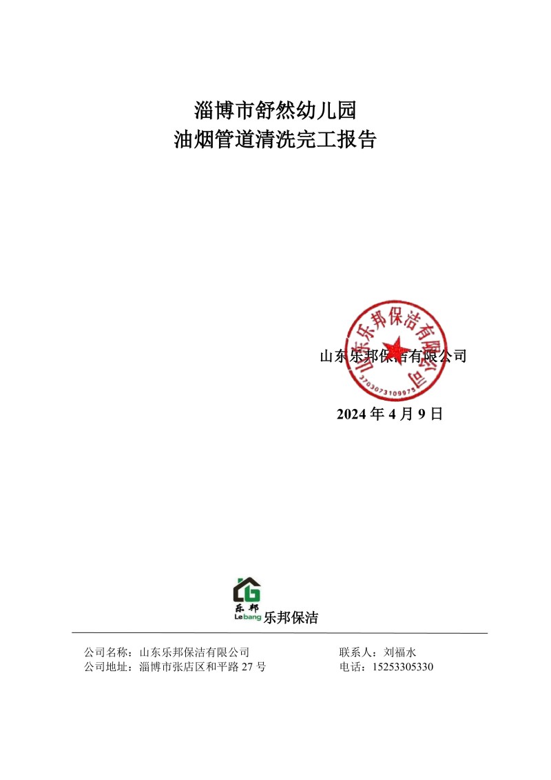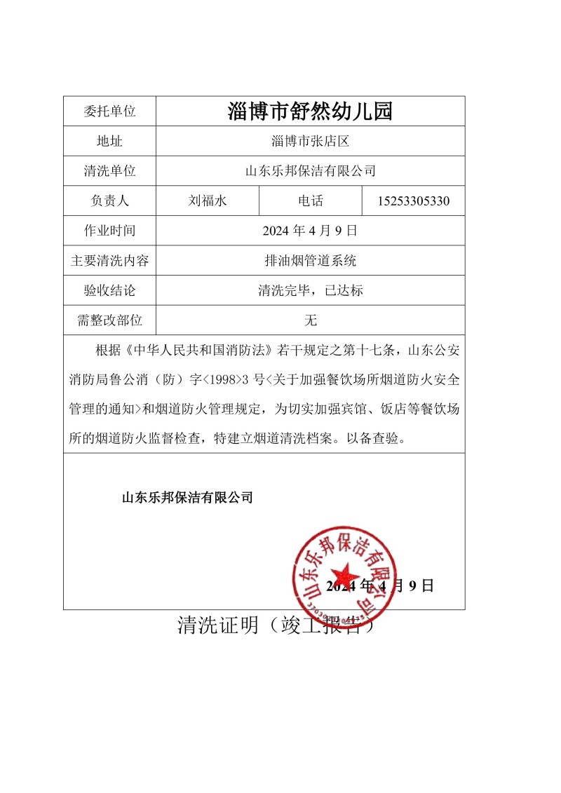 淄博市舒然幼兒園清洗報(bào)告24.4.9