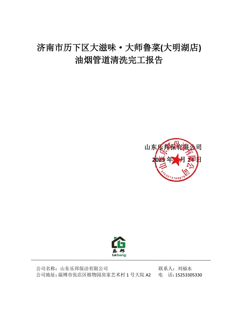 濟(jì)南市歷下區(qū)大滋味·大師魯菜(大明湖店)清洗報(bào)告25.3.24