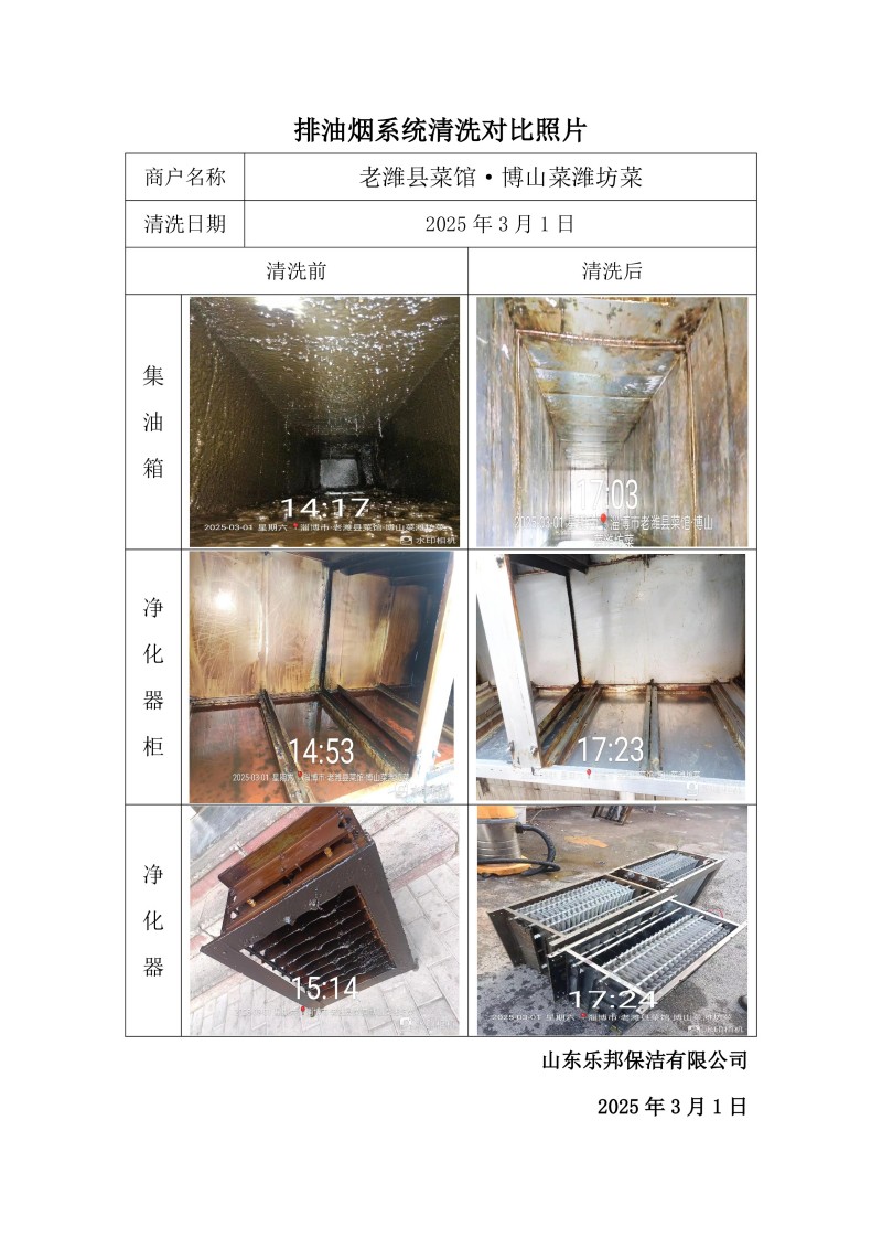 濟(jì)南市歷下區(qū)大滋味·大師魯菜(大明湖店)清洗報(bào)告25.3.24