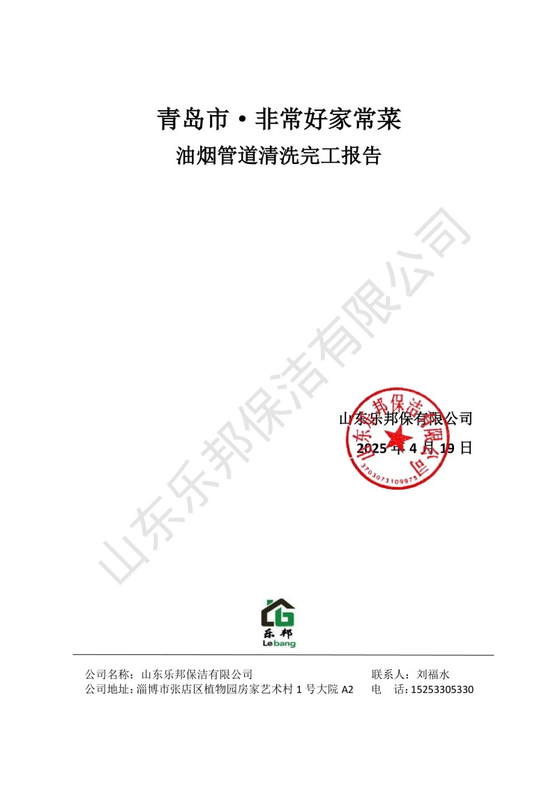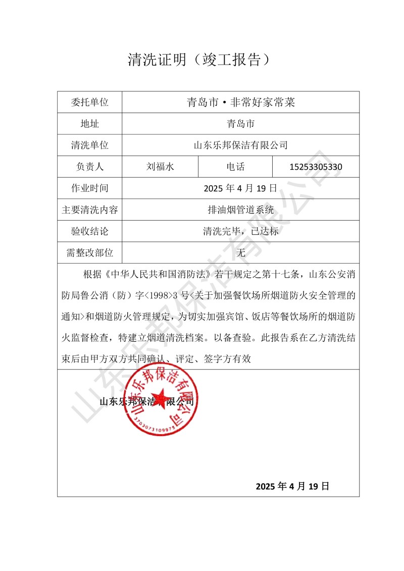 青島市·非常好家常菜清洗報(bào)告25.4.19