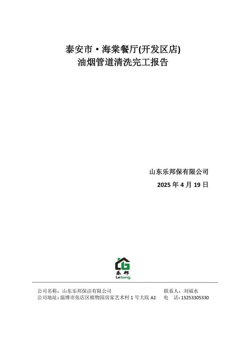 泰安市·海棠餐廳(開發(fā)區(qū)店)清洗報告25.4.19