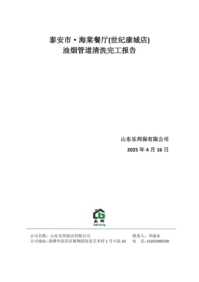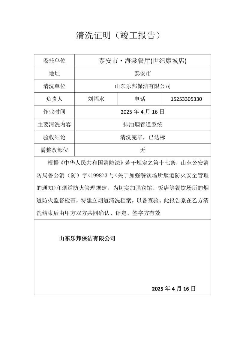 泰安市·海棠餐廳(長城路店)清洗報(bào)告25.4.18