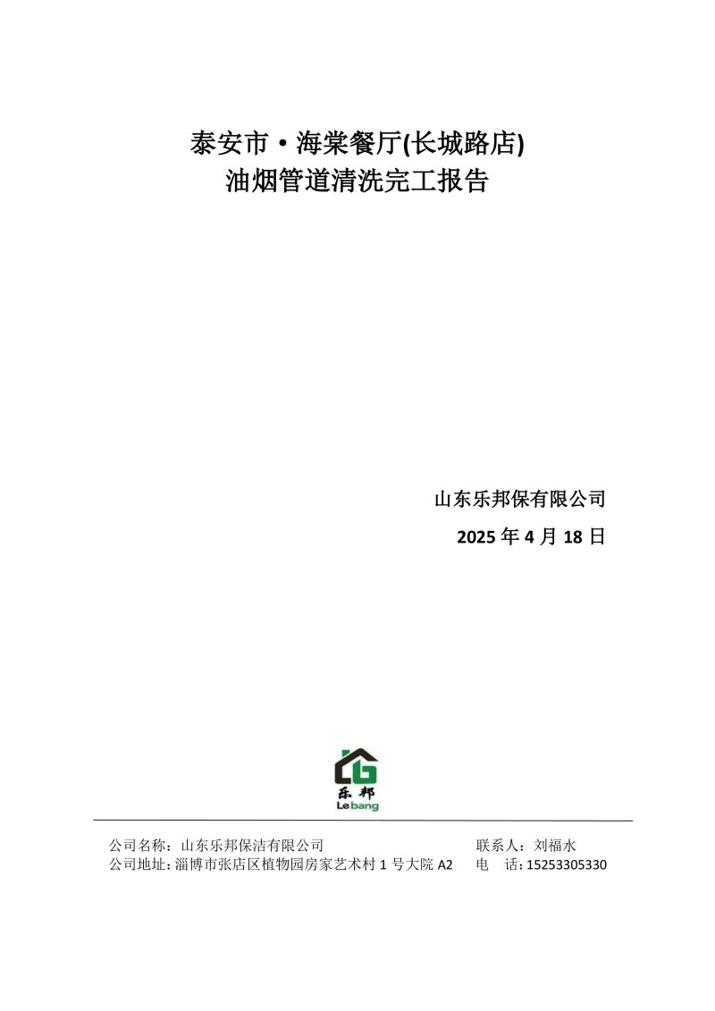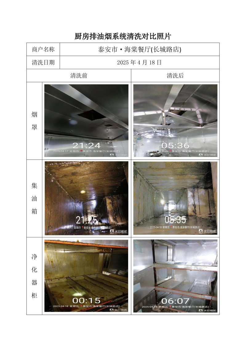 泰安市·海棠餐廳(長(zhǎng)城路店)清洗報(bào)告25.4.18