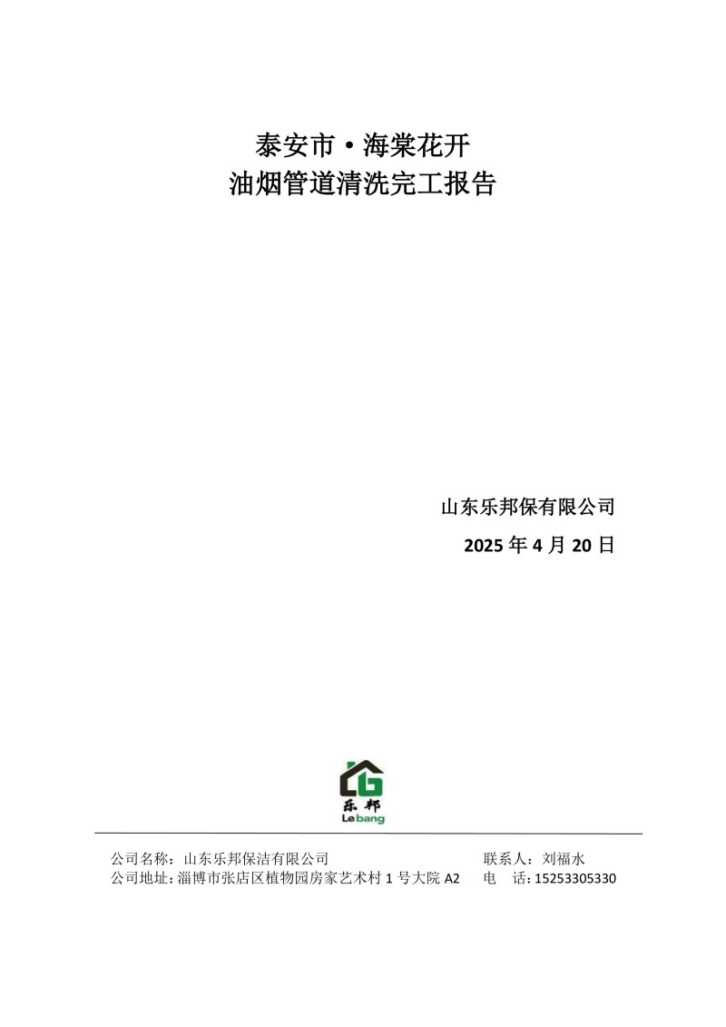 泰安市·海棠花開清洗報(bào)告25.4.20