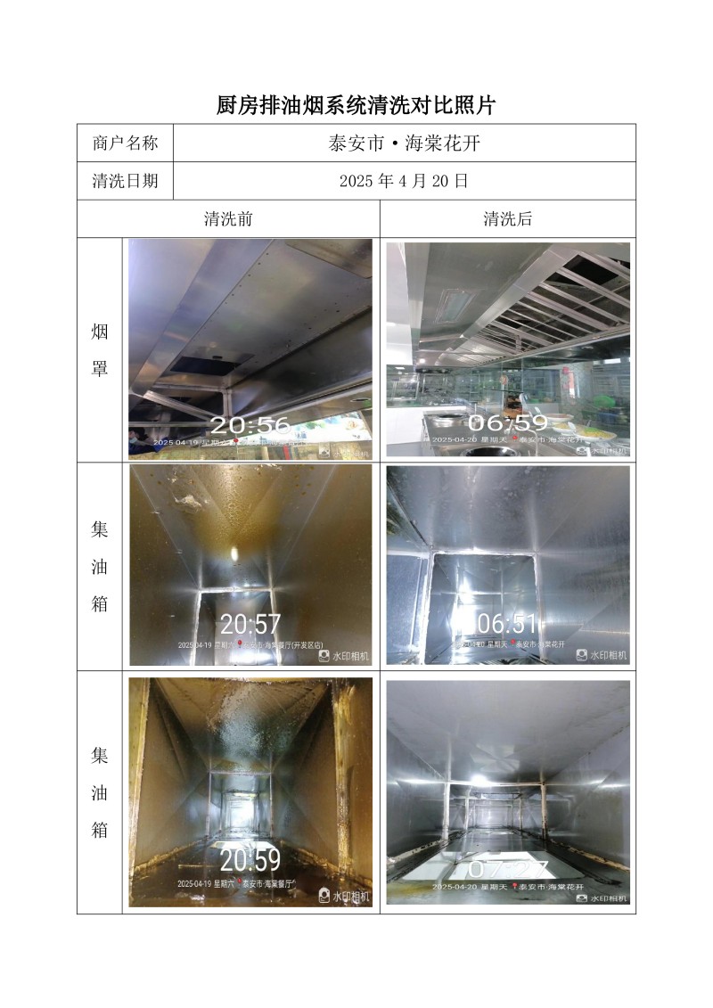 泰安市·海棠餐廳(長城路店)清洗報(bào)告25.4.18