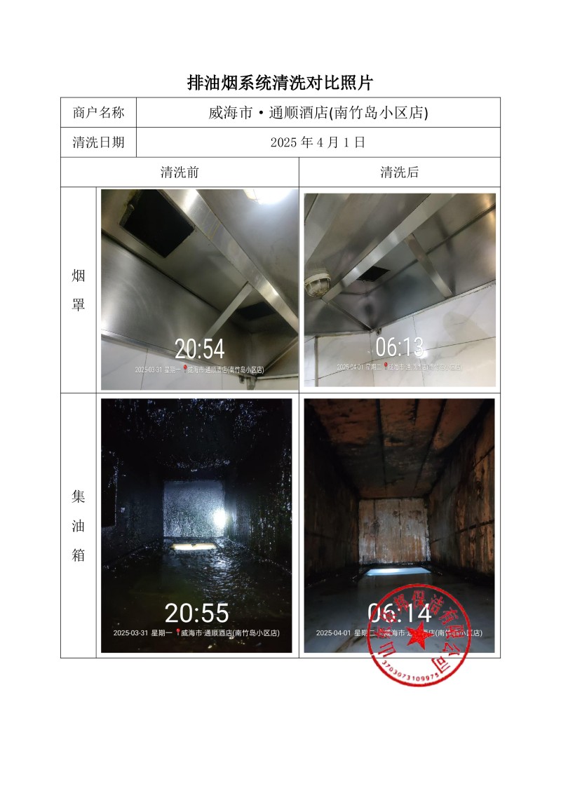 威海市·通順酒店(南竹島小區(qū)店)清洗報告25.4.1