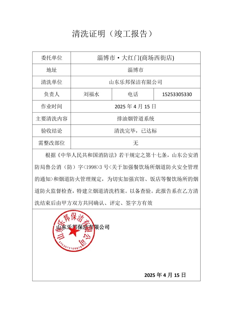 淄博市·大紅門(商場西街店)清洗報告25.4.14