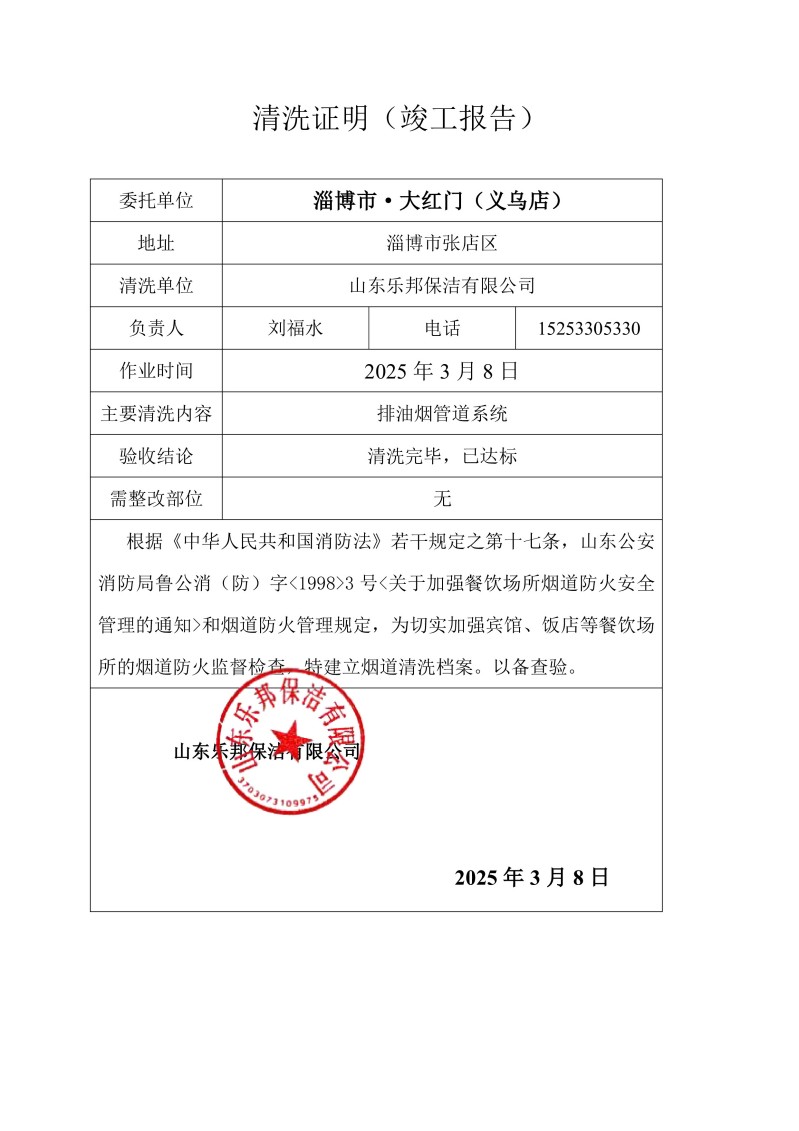 淄博市·大紅門(義烏店)清洗報告25.3.8