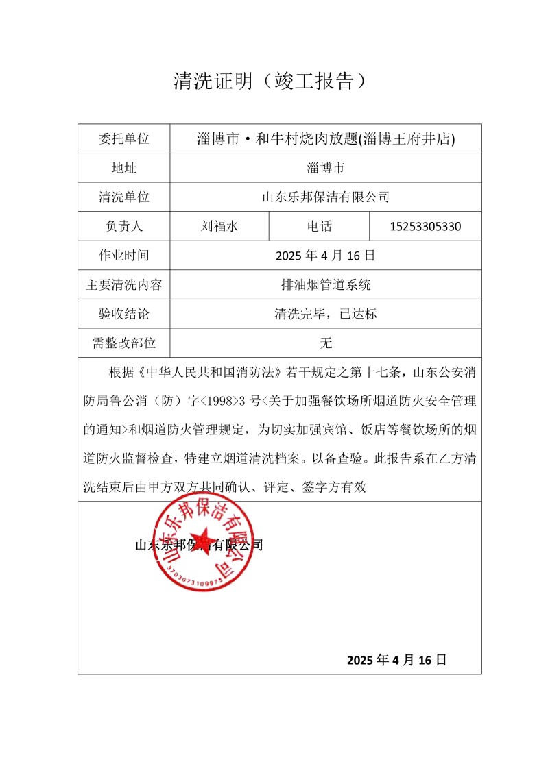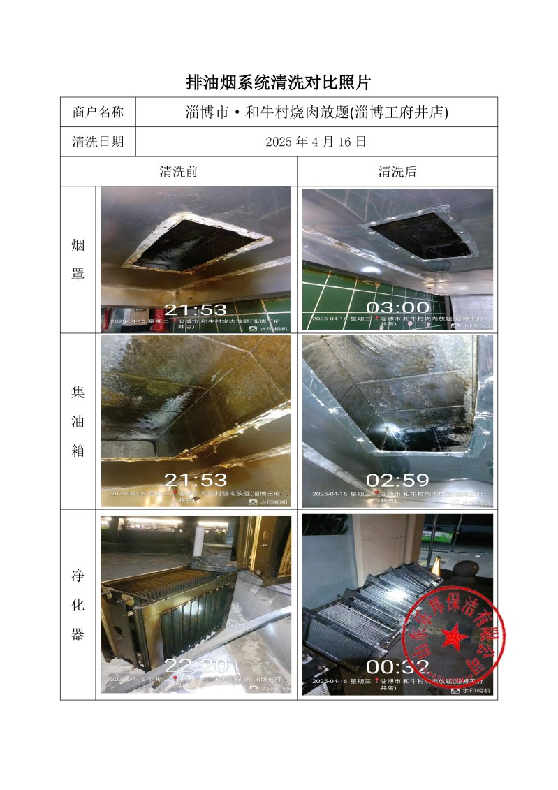 淄博市·和牛村燒肉放題(淄博王府井店)清洗報(bào)告25.4.16