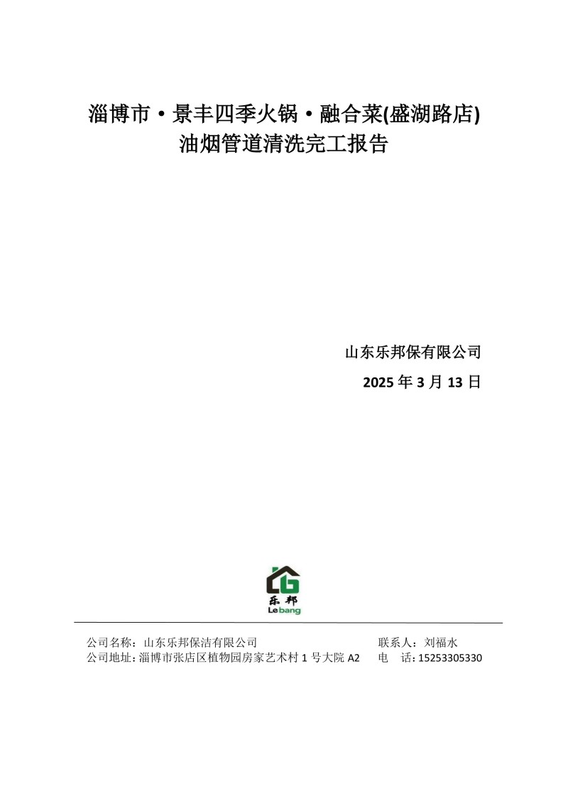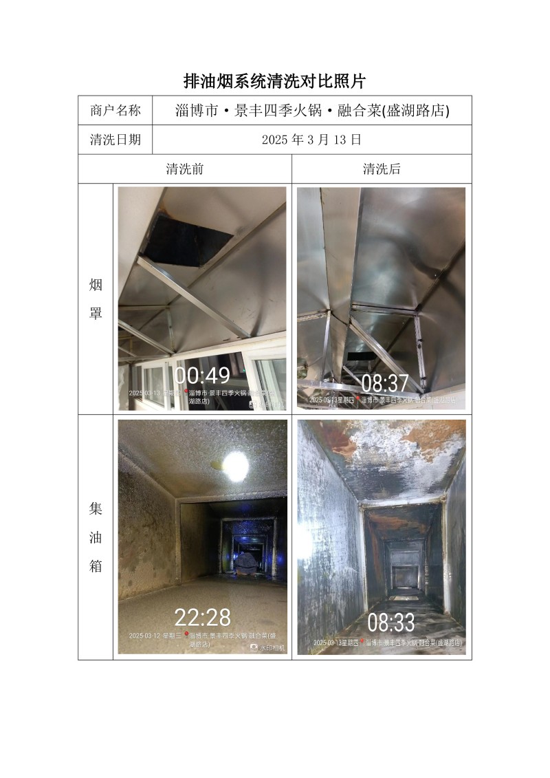 淄博市·景豐四季火鍋·融合菜(盛湖路店)清洗報告25.3.13