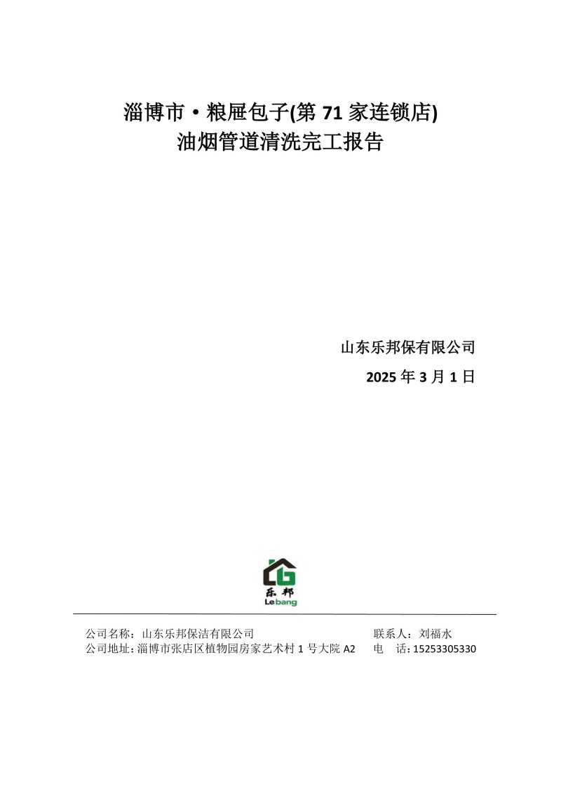 淄博市·糧屜包子(第71家連鎖店)清洗報告25.3.1