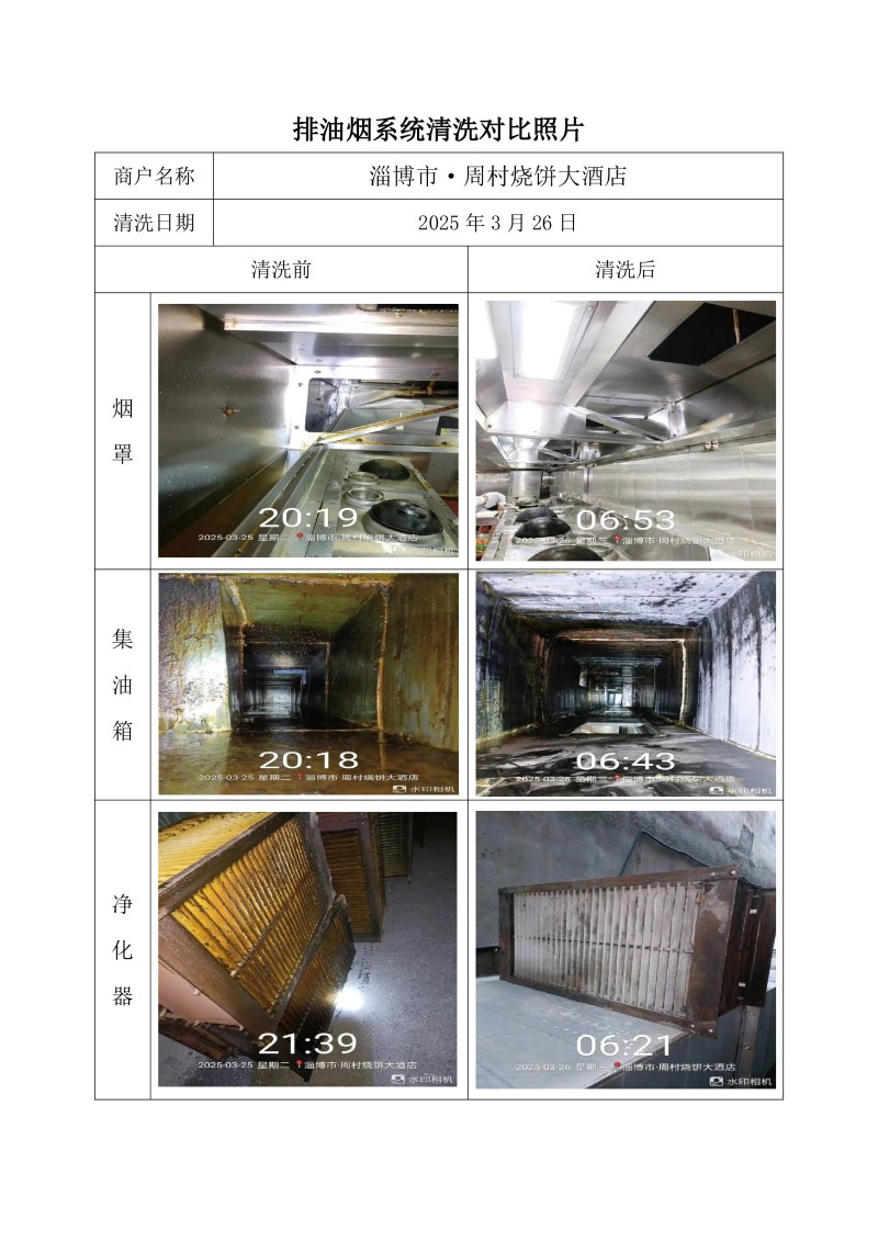 淄博市·周村燒餅大酒店清洗報(bào)告25.3.26