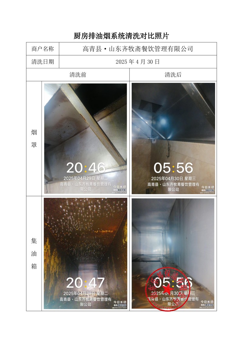 高青縣·山東齊牧齋餐飲管理有限公司清洗報(bào)告25.4.30