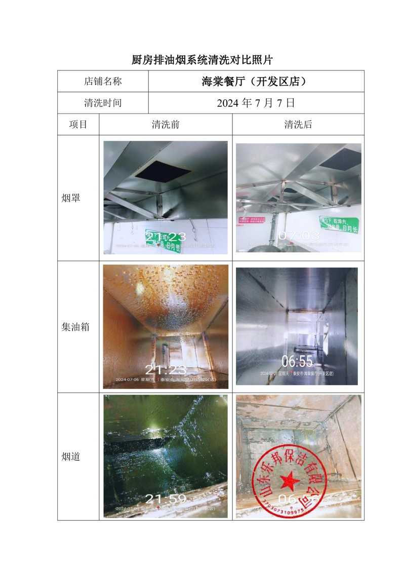 海棠餐廳(東岳大街店)清洗報(bào)告24.7.8