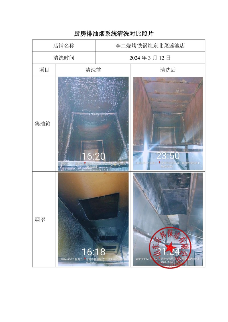 李二燒烤鐵鍋燉東北菜蓮池店清洗報告24.3.12