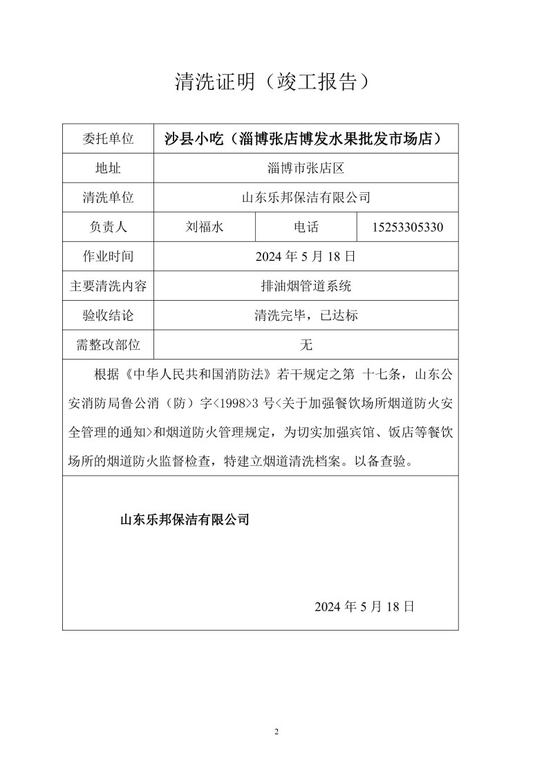 沙縣小吃(淄博張店博發(fā)水果批發(fā)市場店)清洗報告24.5.20