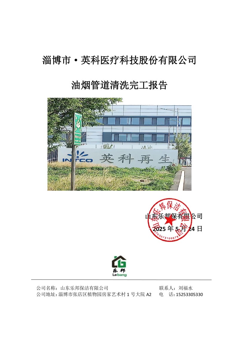 淄博市·英科醫(yī)療科技股份有限公司清洗報(bào)告25.5.24