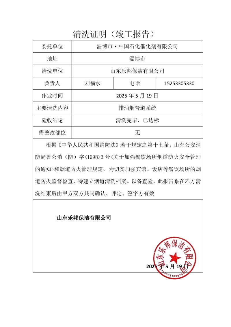 淄博市·中國石化催化劑有限公司清洗報(bào)告25.5.19